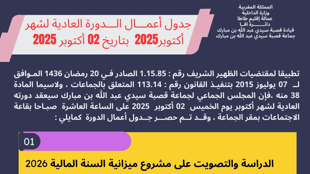 اشغال الدورة العادية لشهر اكتوبر 2025 ...